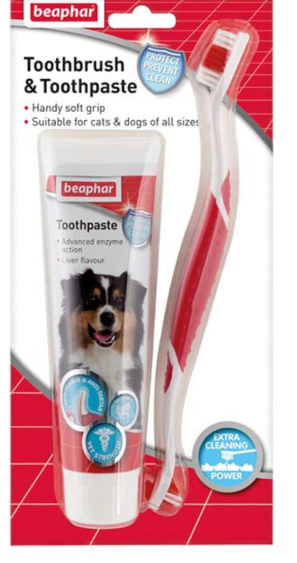 Contains one tube of toothpaste, as well as a toothbrush, to offer cost-effective, easy to use protection for your dog or cats teeth. Early plaque formation must be brushed away in order to prevent bad breath and tooth decay. This two ended brush, with a handy soft grip, is specially designed to suit the shape of your pet's teeth, and has different lengths of bristle to help you reach all the teeth. Combined with the palatable liver flavoured toothpaste, this kit provides optimal dental care for your cat or dog.